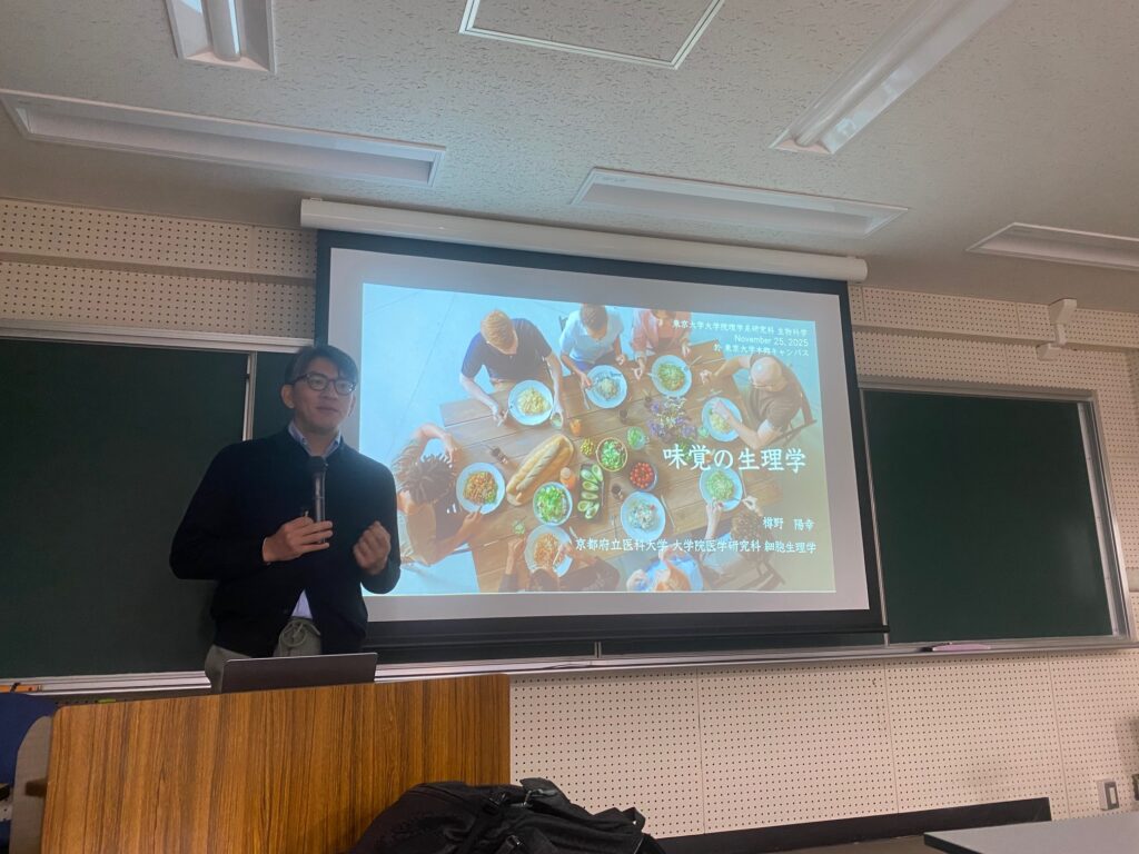 毎年京都府立医大で嗅覚の講義をさせて頂いているので、今年は樽野先生に来ていただき味覚の講義をお願いしました。軽視される感覚、味覚、嗅覚、chemical senseの価値を広めていきます。 Categories: NEWS 0 Comments コメントを残す コメントをキャンセルメールアドレスが公開されることはありません。 ※ が付いている欄は必須項目です Name * Email * Website What's on your mind? 次回のコメントで使用するためブラウザーに自分の名前、メールアドレス、サイトを保存する。